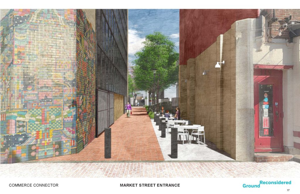 Commerce Street is the second Vision Framework project to be undertaken. With a series of connective pathways that originate at the Independence Visitor Center and stretch east, then south towards Carpenters’ Hall, the trail passes several historic and cultural institutions including Christ Church Burial Ground, Commodore Uriah Phillips Levey Park and the Benjamin Franklin Museum. This pathway offers a curated pedestrian route off the beaten path that would be activated by the local institutions.